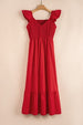 Cotton Flutter Smocked High Waist Ruffle Maxi