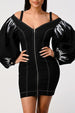 Denim black dye sleeve zip up dress