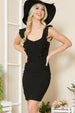Stretch eyelet fabric with full liningRuffle sleeves Model is 5'8 wearing size XSMade In: USAFabric Contents: 92%...