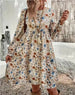 -Multicolored flower print-Cinched, tiered dress- Long sleeve, ruffled at the bottom of the sleeveMade In: China