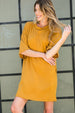 Soft light sweater knit dress with side pockets. Loose fit, drop shoulder half sleeve tunic dress.Model is...