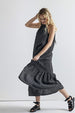 Striped High Ruffle Neckline Tiered Maxi Dress