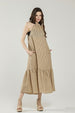 Introducing the Striped High Ruffled Neckline Tiered Maxi Dress, a masterpiece of design and comfort blended into...