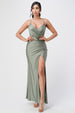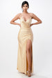 Tara side pleat overlap gown with side opening Style: party Print / Pattern: solid Fit: regular Sleeve:...
